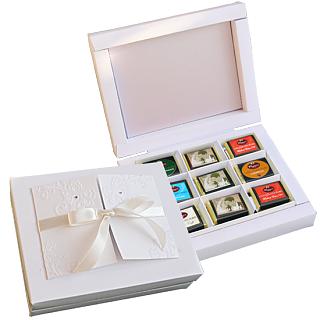 Aksamitne pudełko ze wstążeczką na 9 czekoladek
