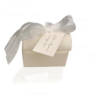 Kremowy kuferek ze wstążeczką i bilecikiem