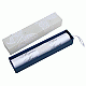 Eleganckie zaproszenie ślubne w formie pudełeczka. Etui wykonane z pergaminu, motywy uszlachetnione puszystym aksamitem oraz ozdobione kryształkami. Spód pudełka z fakturowanego, granatowego papieru zakończony białą, satynową wstążką, która ułatwia wysunięcie zaproszenia. Nadruk na papierze białym, metalizowanym zwijanym w rulon, spiętym pergaminową obrączką z puszystym aksamitem.