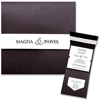 Nowoczesne, trójczłonowe, rozkładane pionowo zaproszenie, wykonane w jasno-ciemnej kontrastowej stylistyce.